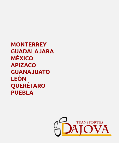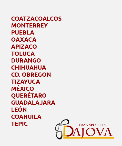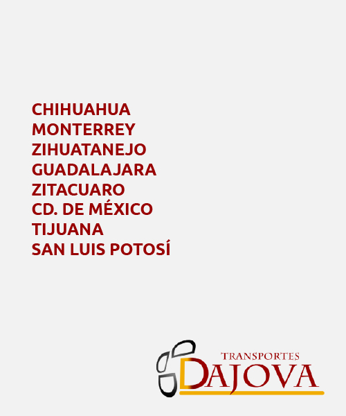 Es fundado por una familia que decide invertir dentro del ramo del transporte, nombrando inicialmente “Transportes Curiel S.A. de C.V.” En el año 1970, formada por el Señor Sebastián Curiel Fragoso e hijos iniciando así operaciones con dos unidades, las cuales operaban ellos mismos. La empresa “Transportes Curiel S.A. DE C.V.” crece de manera apresurada, integrándose así, con el paso de los años al equipo de trabajo los nietos, quienes en conjunto deciden llevar a cabo el reto de realizar la división de bienes y crear empresas independientes. Es cuando nuestro Director, el Señor Jorge Curiel Rodriguez, se encarga de instituir “Transportes Dajova S.A. de C.V.” absorbiendo de esta manera la experiencia de 20 años de trabajo, comenzando con una nueva razón social, pero con la misma responsabilidad, honestidad y aunado a un Sistema de Calidad ISO 9001:2008, pasando a la nueva versión en 2015. “Transportes Dajova S.A. de C.V” inicia operaciones el 01 de junio del 2009, generando por la trayectoria éxito y excelente trato, corroborado por nuestros clientes y referencias crediticias, poniéndonos a sus órdenes.